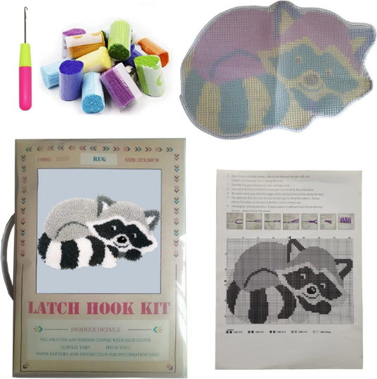 Racoon Latch Hook Rug Kit DIY Latch Hook Kit Gift for Kids Adults Hooked Carpet Crochet Rug Making Craft Kits